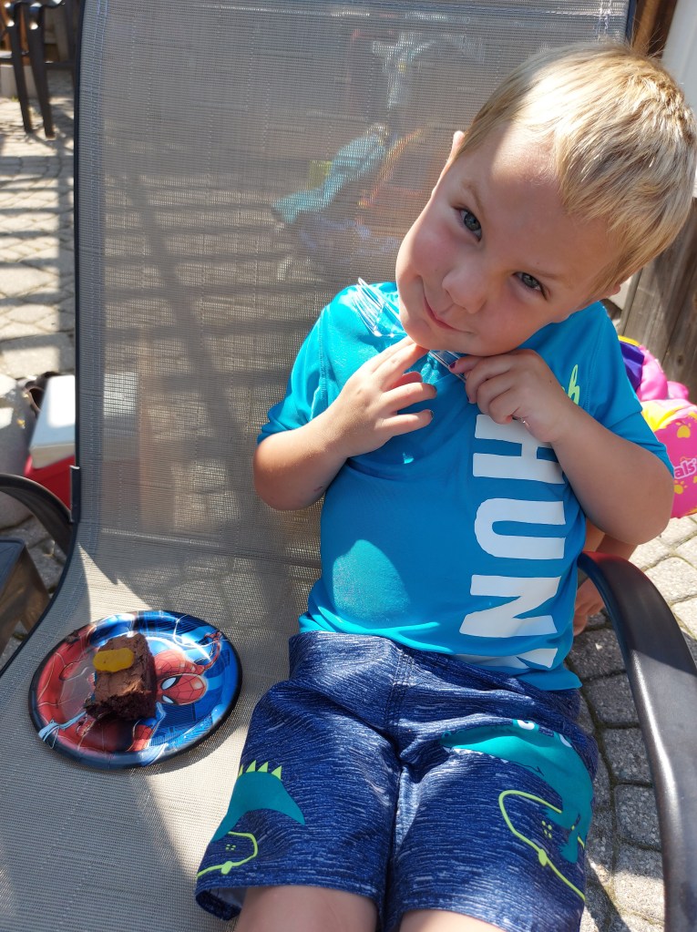Yesterday you turned four-years-old in which you like to tell people by sticking up four slightly adorable chubby fingers. You can mostly dress yourself, poop on the toilet, and are going to school in September. But I hope you still come to me for snuggles, kisses or a marriage proposal for a little bit longer as I’m not quite ready for those to end yet.