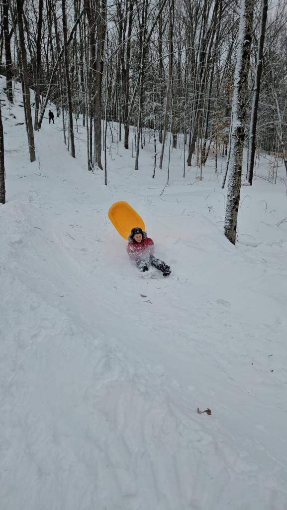 Now fearlessness can come in all forms but for you it seems to be revolved around speed. Great. Therefore helmets are an absolute (In fact, I’m thinking of just putting you in one all the time). This winter you tobogganed down a hill that no one else had any interest in travelling down because they still liked all of their limbs. When I say tobogganed, I mean flying down at warp speed, flipping off, landing in a snow bank, then giving a reassuring “thumbs up” at us from the bottom of hill. Continuously until we made you come inside.