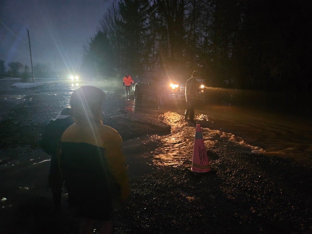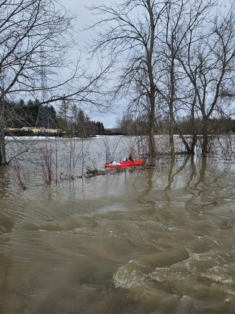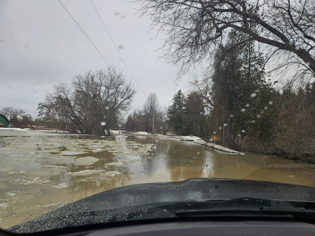 With the combination of mountains of snow melting in one day followed by torrential rain, it was inevitable. And very messy. It was a stressful week as Daddy worked around the clock with the help of your uncles, Oma & Opa and some friends to keep the water away from the house and the other buildings on the property. Pumps were going day and night pouring an insane amount of water continuously into the fields and forest. The road had turned into a rushing river that you were absolutely forbidden to go “test the depth” in. We were constantly checking sump pumps, filling sandbags and moving things up high in the basement. Stress levels were on the rise, but for you, excitement levels were too.