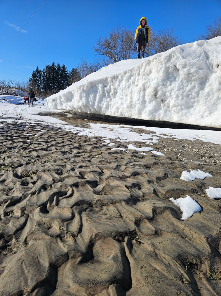 As all good things must come to an end, thankfully this one did. Slowly the river came down with the snow all but gone at this point and the rain taking a much-deserved break. Daddy got caught up on sleep, Mommy’s blood pressure went down, and you got to experience the aftermath of what water can do.